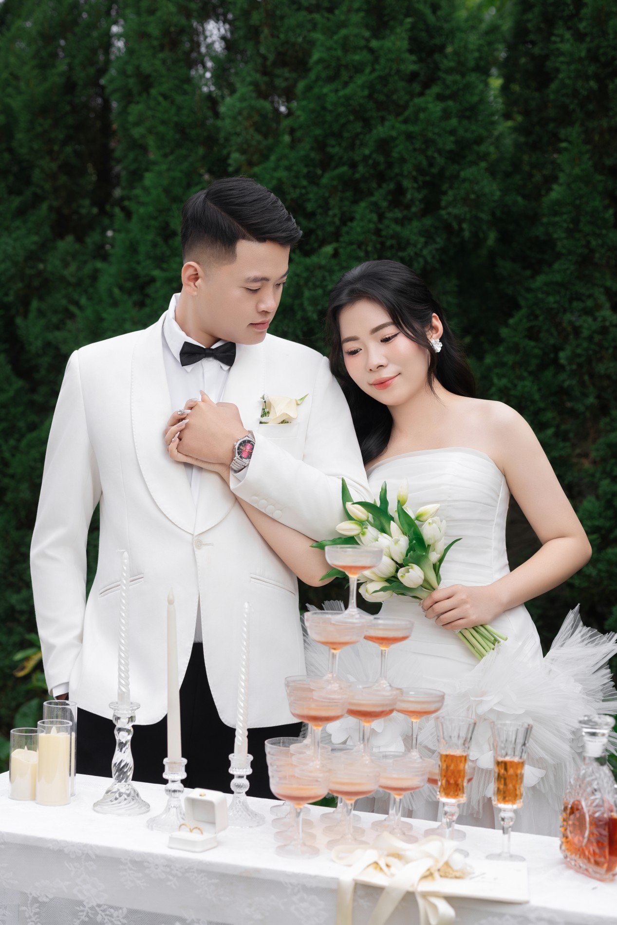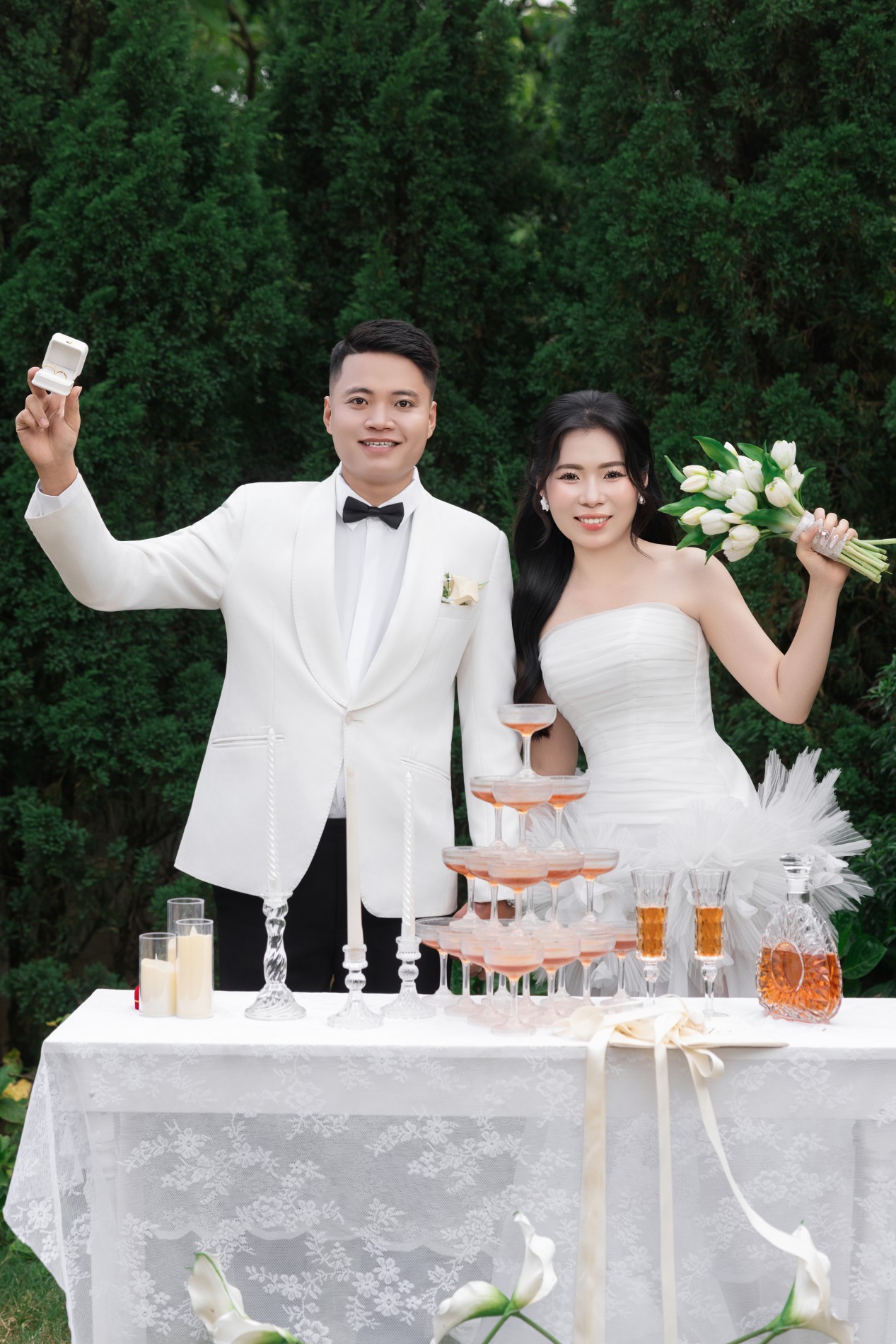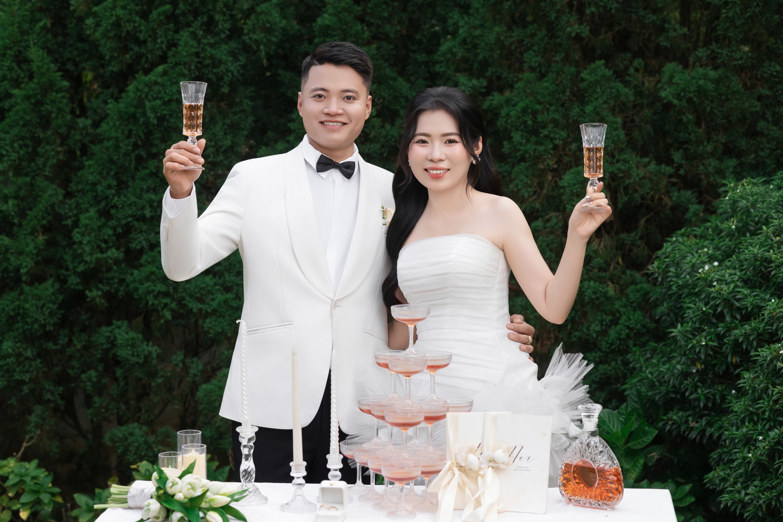 Gặp gỡ , yêu và cưới . Điều bạn vừa nghe không nằm trong một câu chuyện cổ tích , mà chính là câu chuyện và cuộc đời hai chúng tôi. Chúng tôi sẽ yêu thương , chăm sóc, trân trọng và năm tay nhau đi đến hết cuộc đời này .Thật là một niềm vinh hạnh lớn khi ngày hạnh phúc nhất cuộc đời chúng tôi có sự hiện diện và chúc phúc của hai bạn .