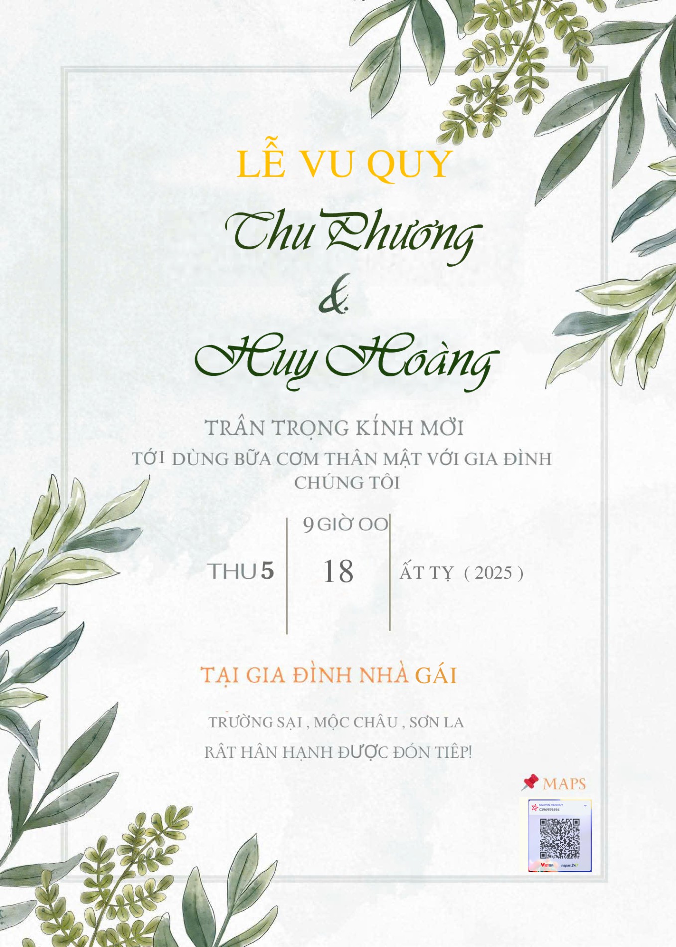 Sự hiện diện của quý khách là niềm vui và niềm vinh hạnh cho hai vc chúng tôi. Chân thành cảm ơn !