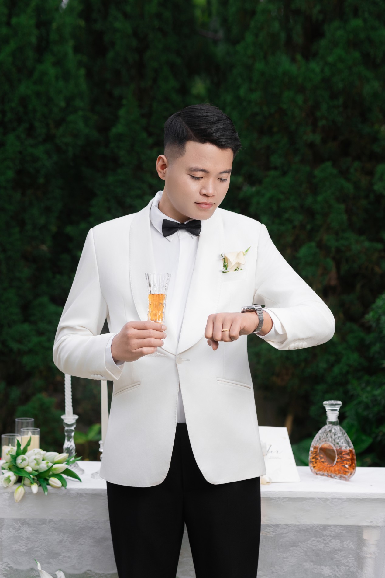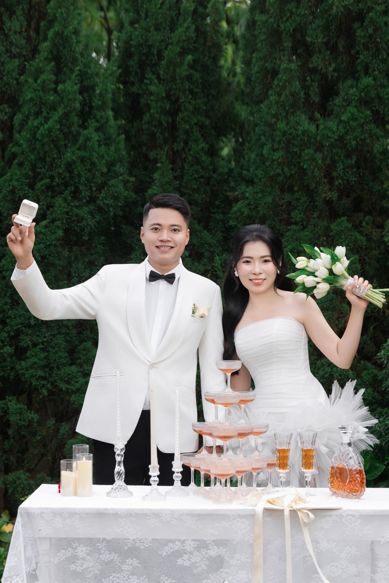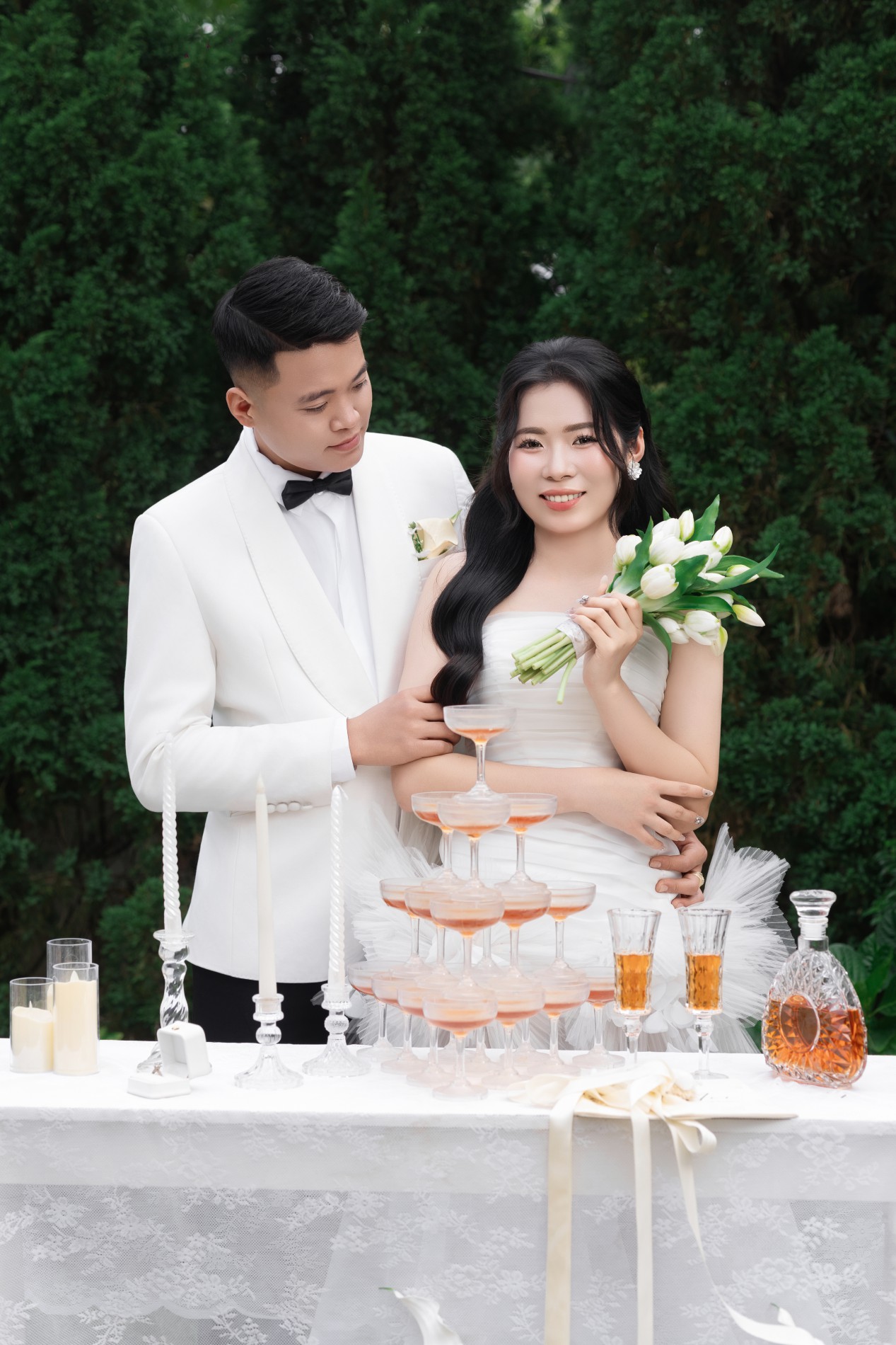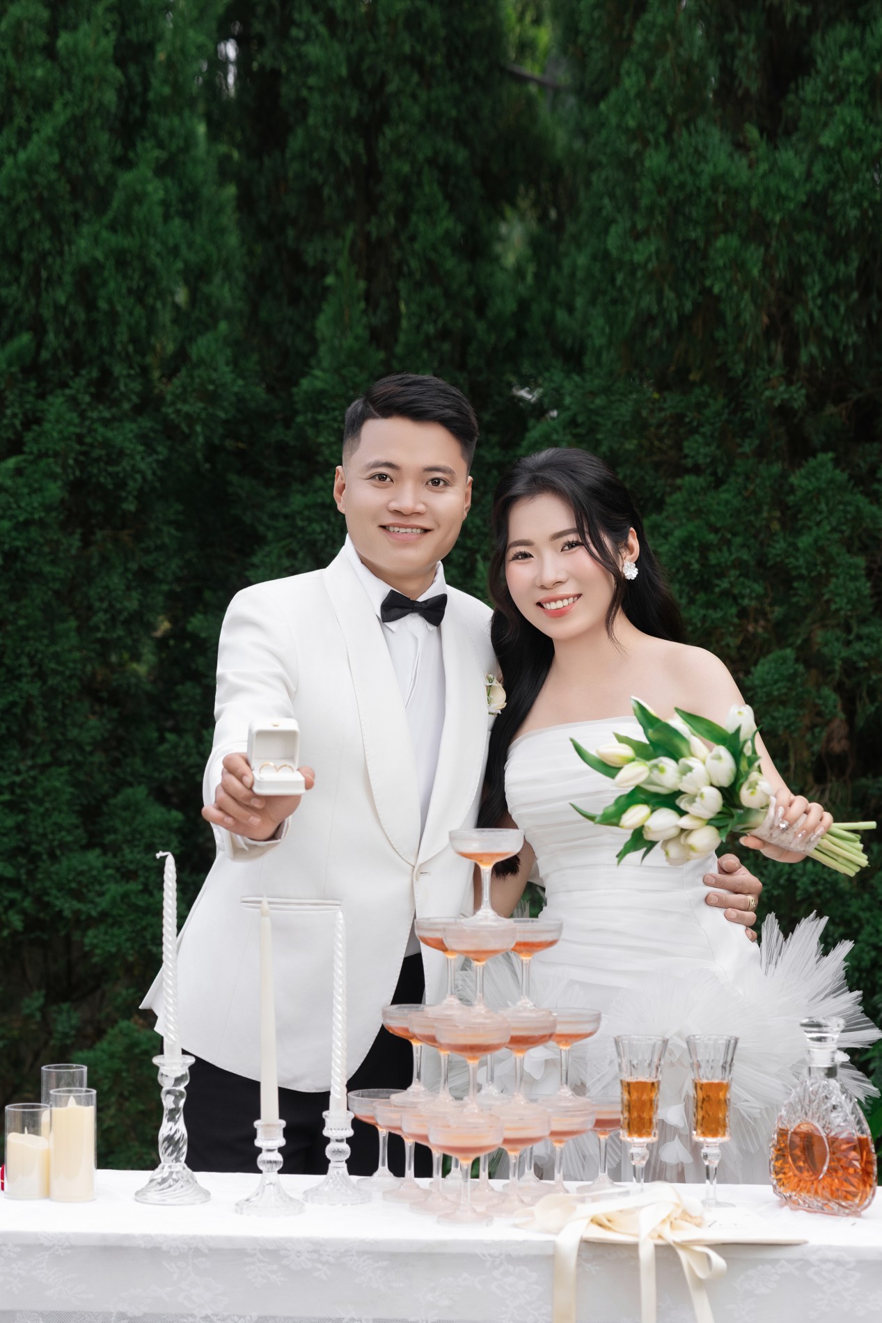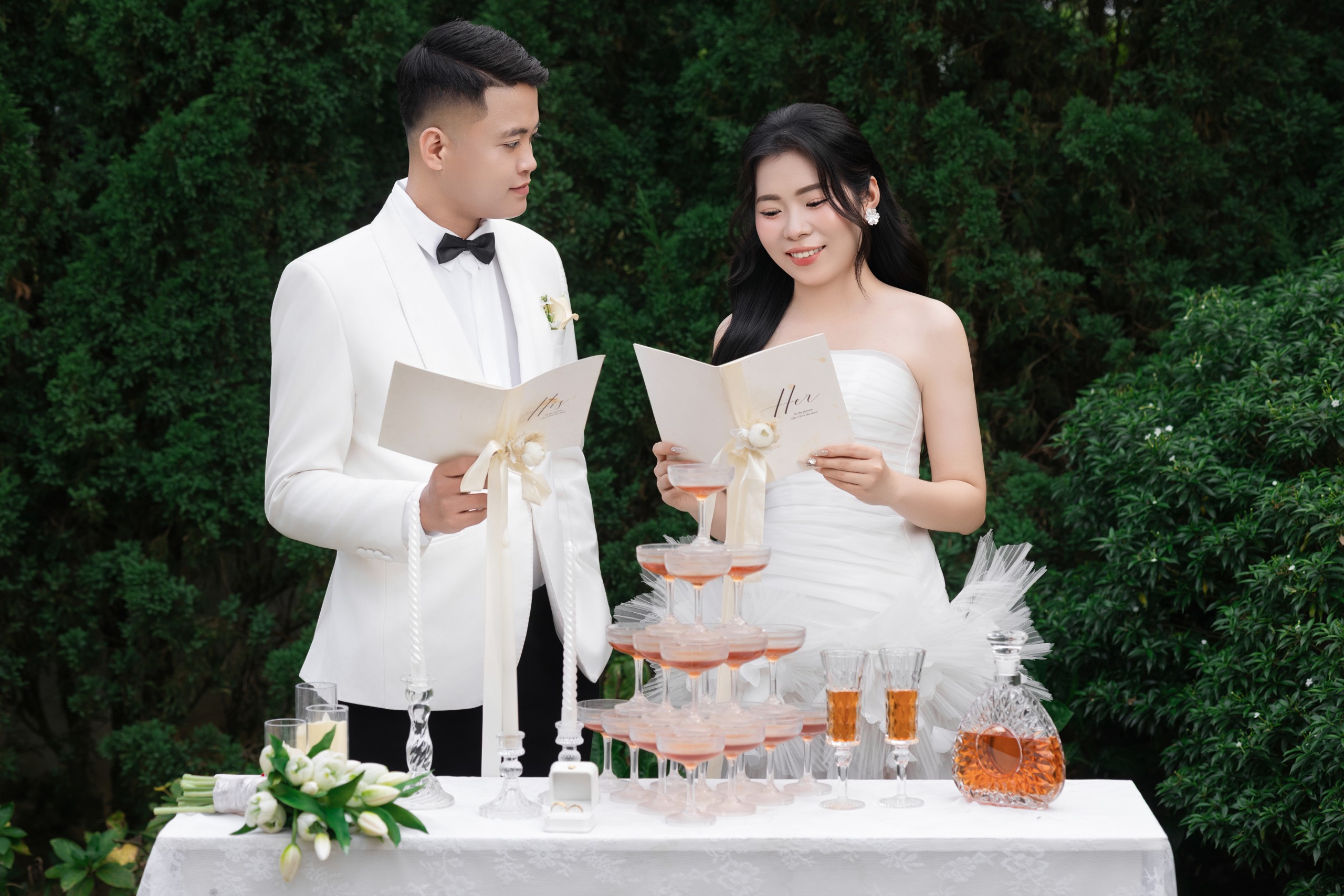 Gặp gỡ , yêu và cưới . Điều bạn vừa nghe không nằm trong câu chuyện cổ tích , mà chính là câu chuyện của cuộc đời hai chúng tôi . Chúng tôi sẽ yêu thương , chăm sóc , trân trọng và nắm tay nhau đi đến hết cuộc đời này .Thật là một niềm vinh hạnh lớn khi ngày hạnh phúc nhất cuộc đời hai chúng tôi, có sự hiện diện và chúc phúc của các bạn .