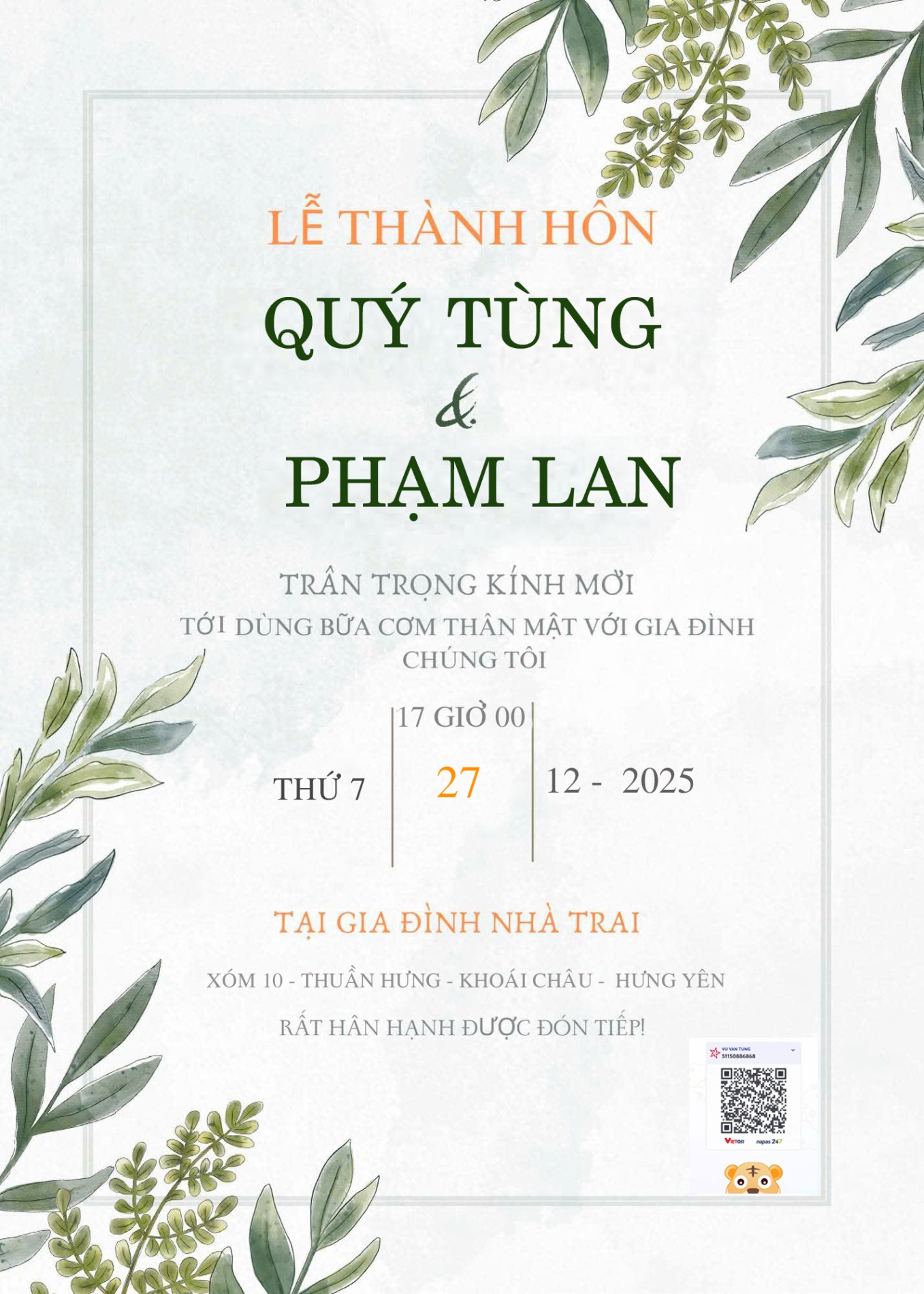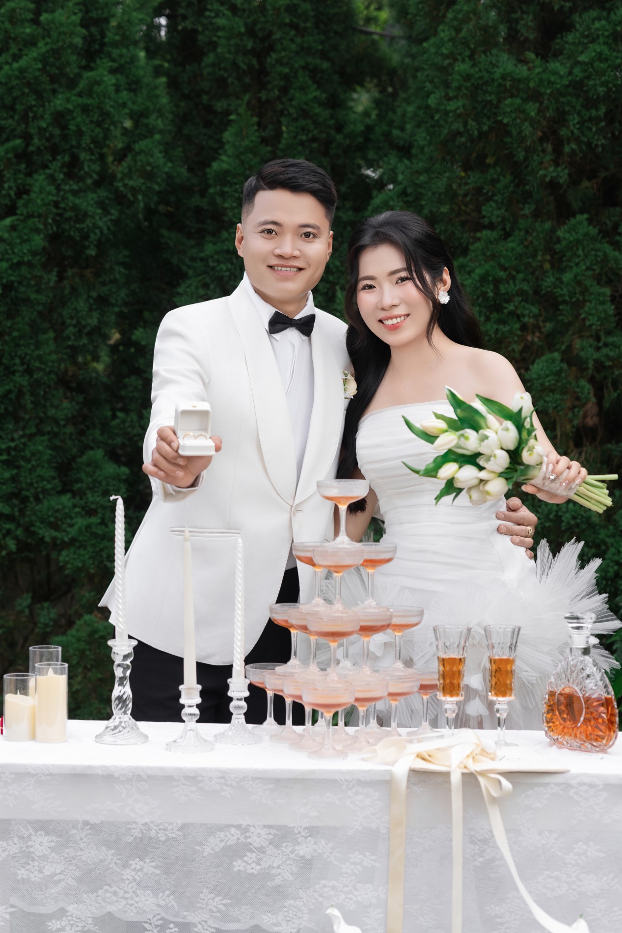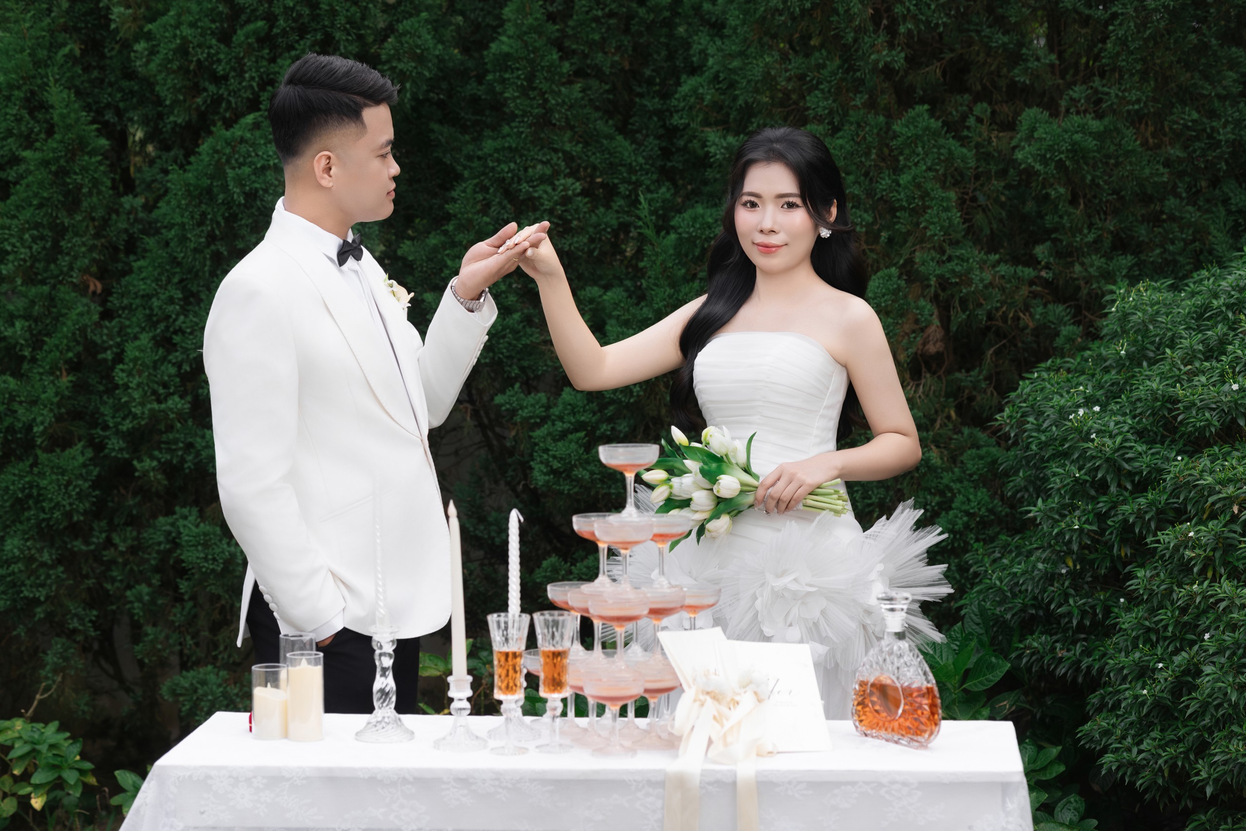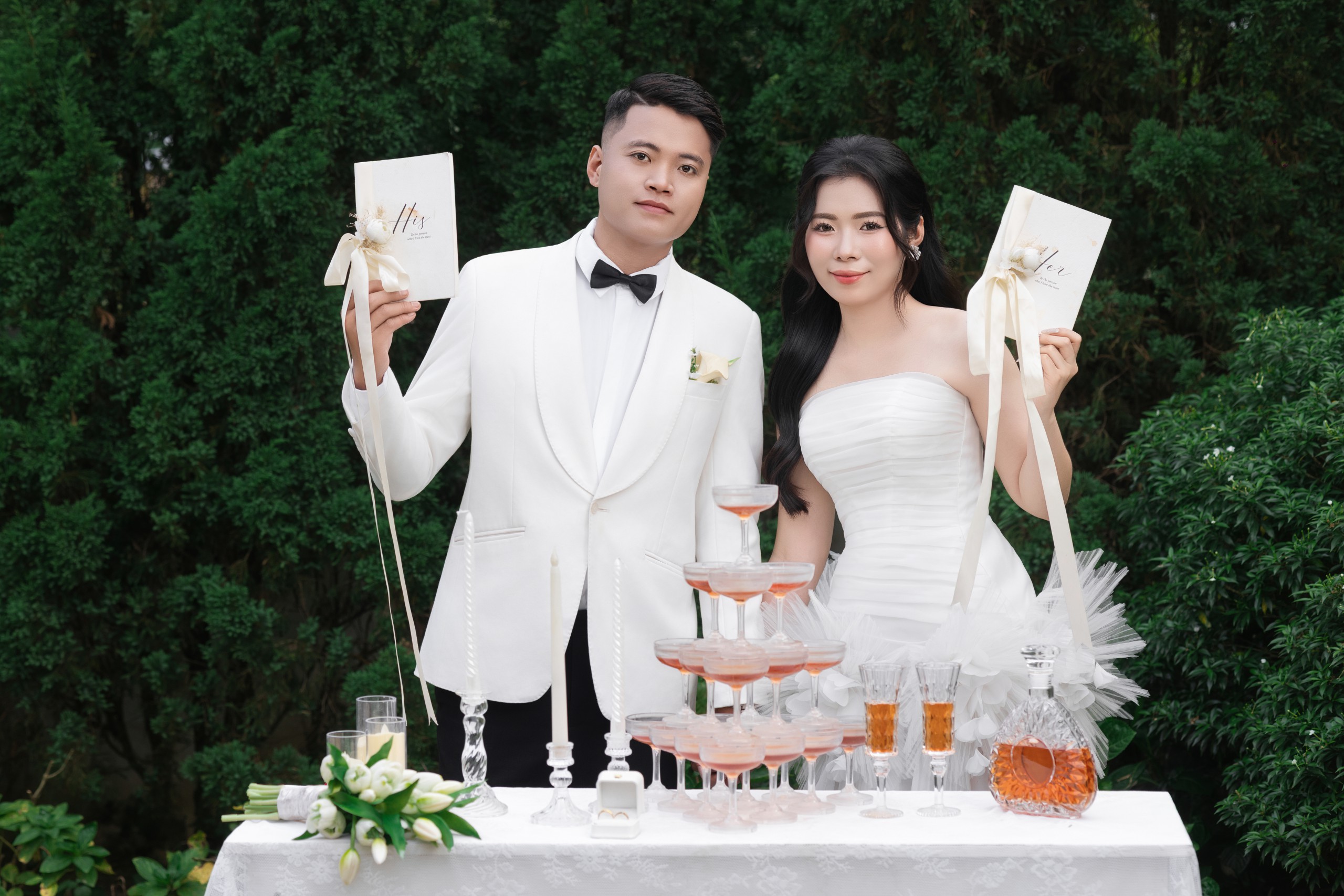 Gặp gỡ , yêu và cưới . Điều bạn vừa nghe không nằm trong câu chuyện cổ tích , mà chính là câu chuyện của cuộc đời hai chúng tôi . Chúng tôi sẽ yêu thương , chăm sóc , trân trọng và nắm tay nhau đi đến hết cuộc đời này .Thật là một niềm vinh hạnh lớn khi ngày hạnh phúc nhất cuộc đời hai chúng tôi, có sự hiện diện và chúc phúc của các bạn .